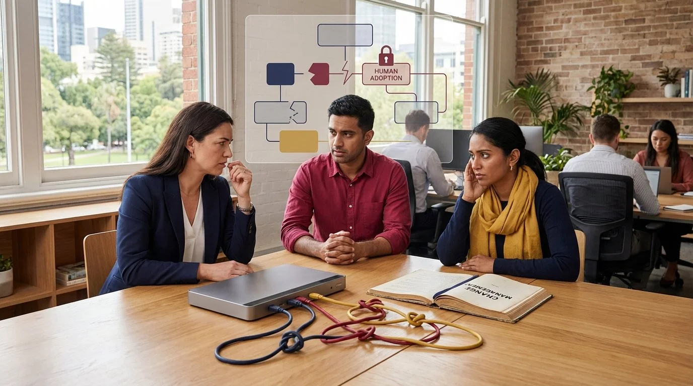 I've seen large organisations spend years and significant capital on technology implementations that never delivered meaningful business outcomes because the adoption question was never properly answered. The technology worked. The people didn't change. And a technology that nobody uses delivers no value regardless of its capability.